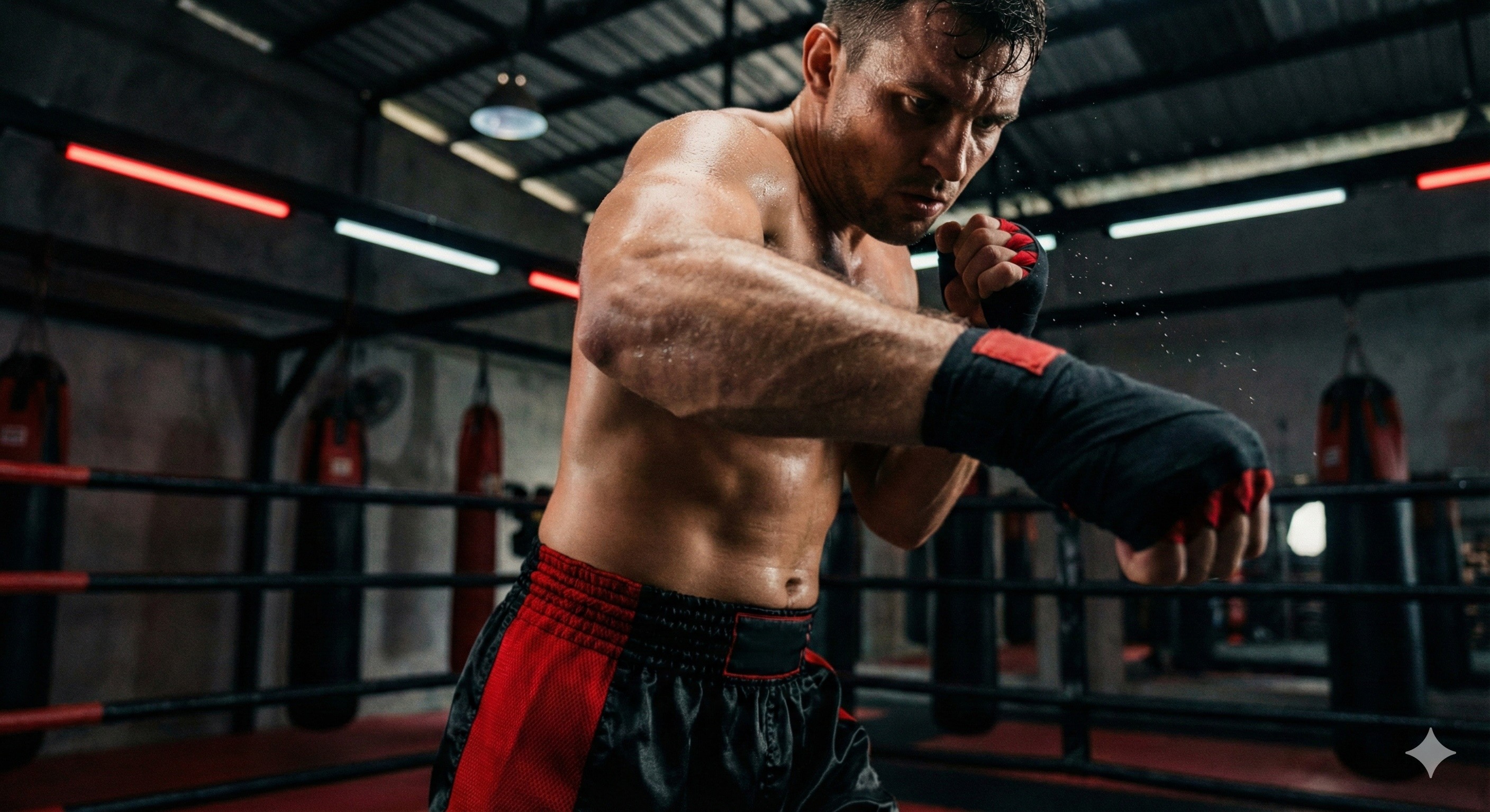 Intensives Technik- und Sparring-Training für erfahrene Fighter. Fokus auf Kombinationen, Clinch-Arbeit und taktisches Kämpfen im Ring.